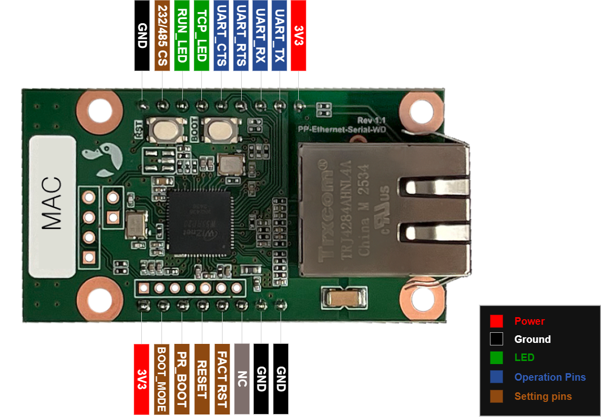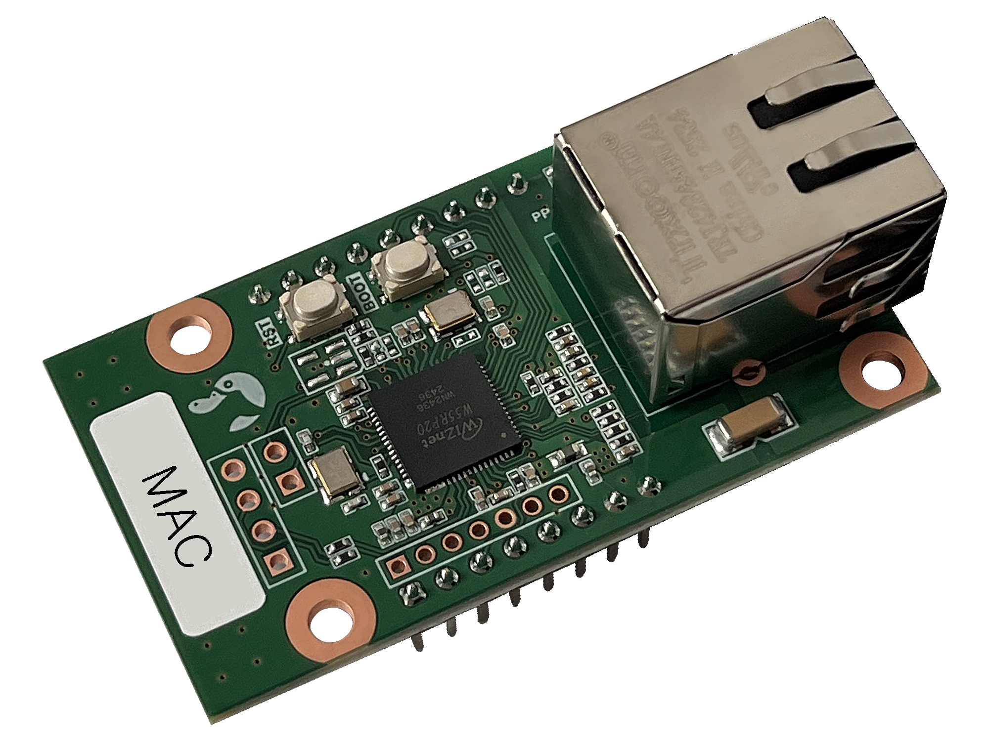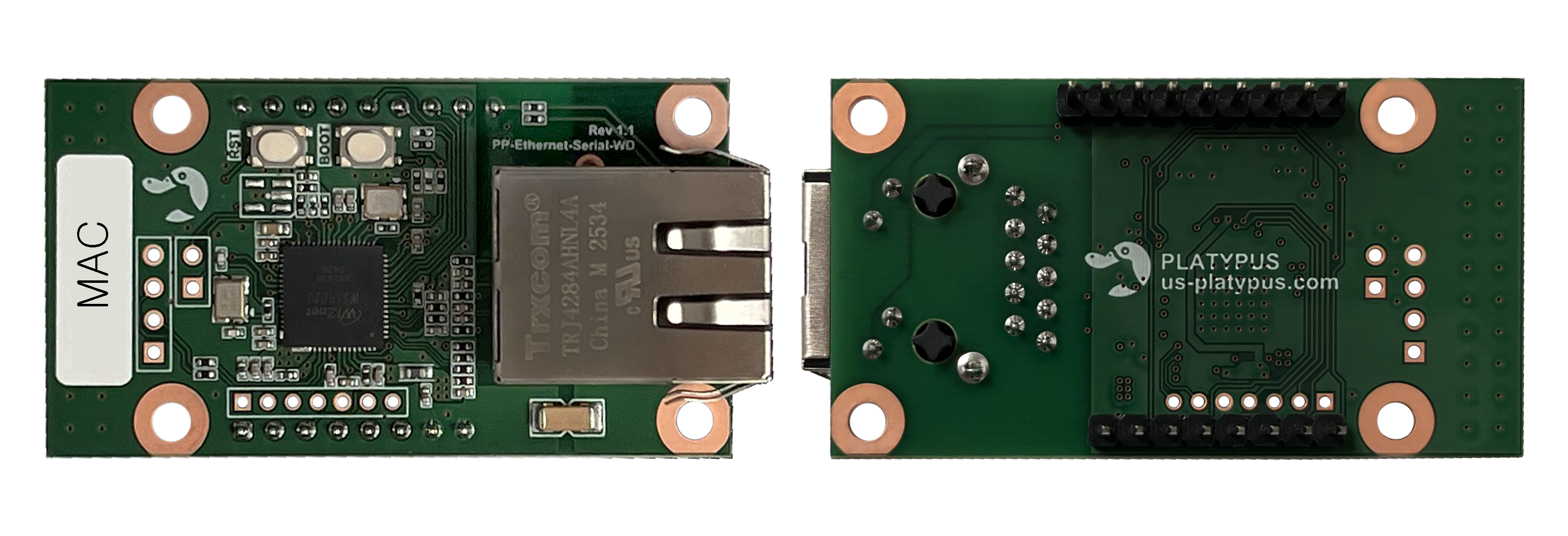 PP-Ethernet-Serial-WD는 작지만 강력한 성능을 자랑하는 Ethernet-UART 변환 모듈입니다. WIZnet의 고성능 이더넷 변환 칩셋 W55RP20이 탑재되어 있습니다.