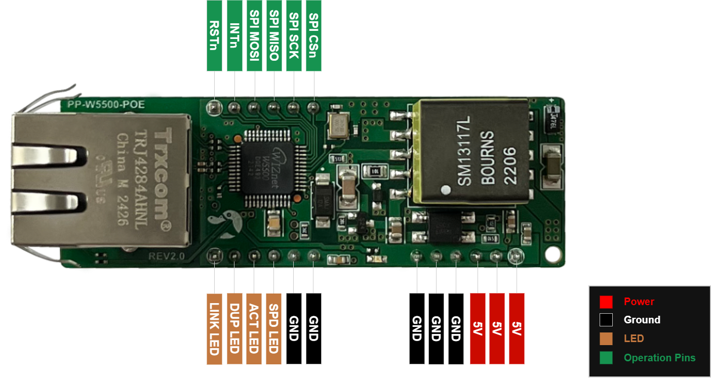 이 모듈은 W5500과 결합되어 이더넷 기능은 물론, 별도의 전원 공급 기능도 함께 제공합니다.